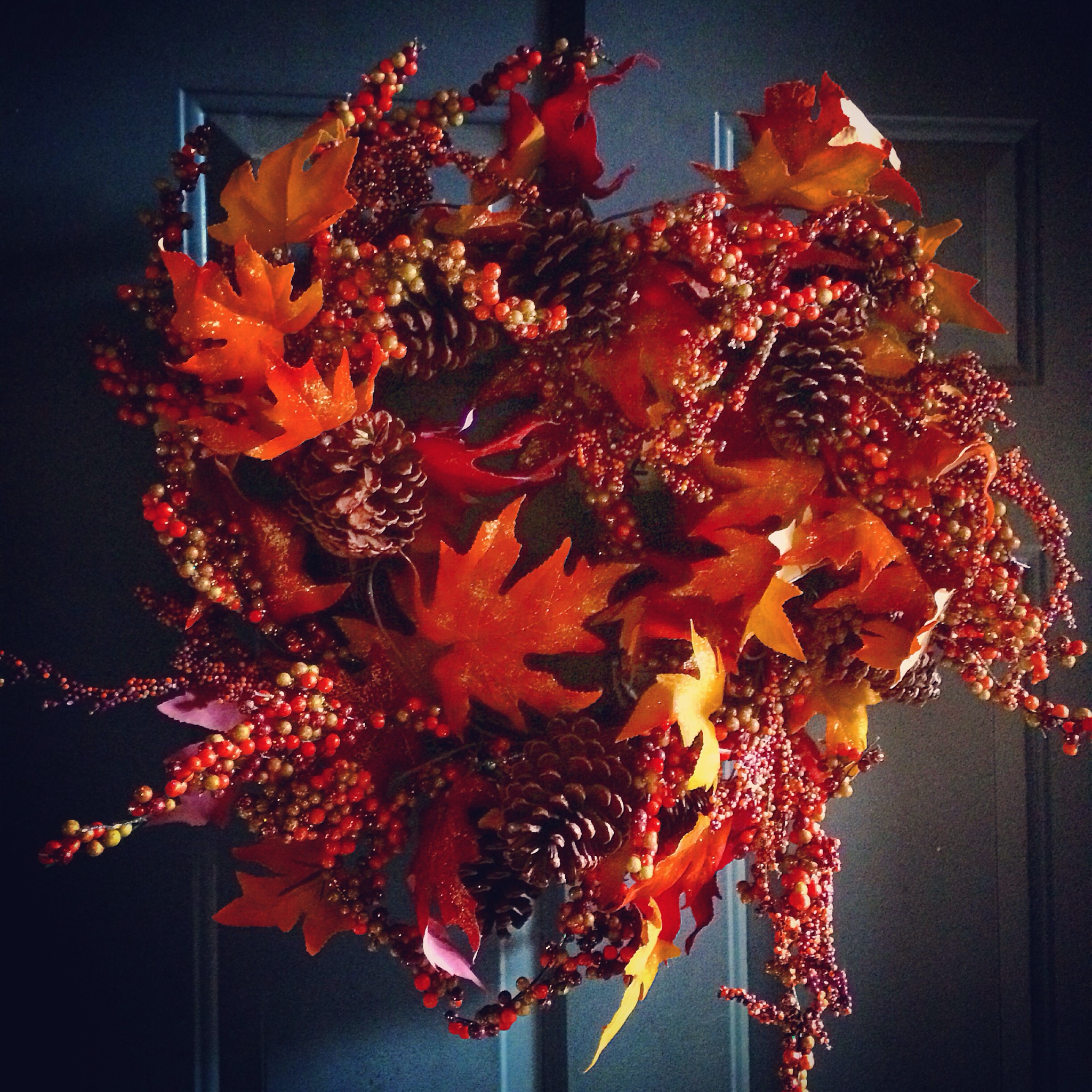 Now that the temps have cooled down a bit, it finally feels like fall! I spent my Saturday morning attempting to rid my patio of spider webs and their residents (to no avail) and decorating my front door.