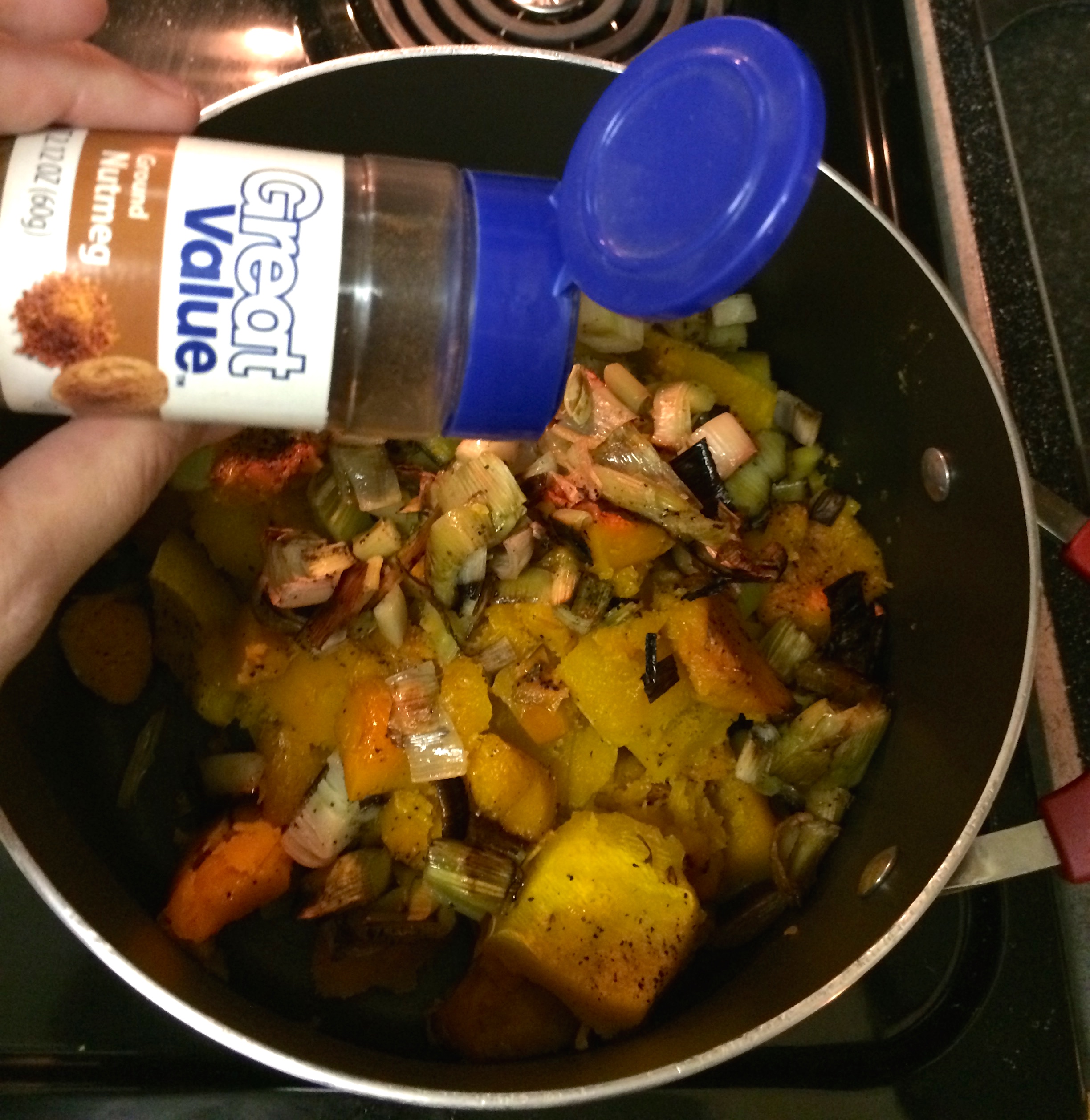 - I am not sure what “freshly grated nutmeg” is, so I used Walmart ground nutmeg from a plastic jar