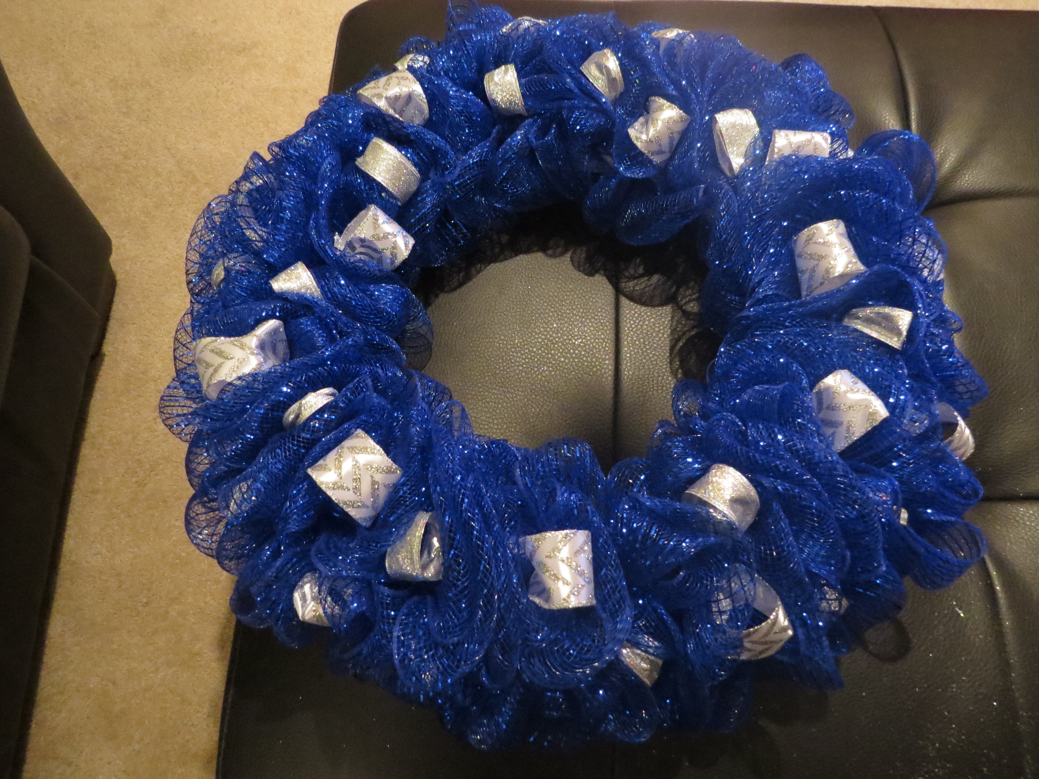 Nothing says the holidays (or in my case, any holiday) like a festive door decoration! I decided that I would take my wreath crafting skills away from the football genre and try my luck at a Hanukkah wreath!