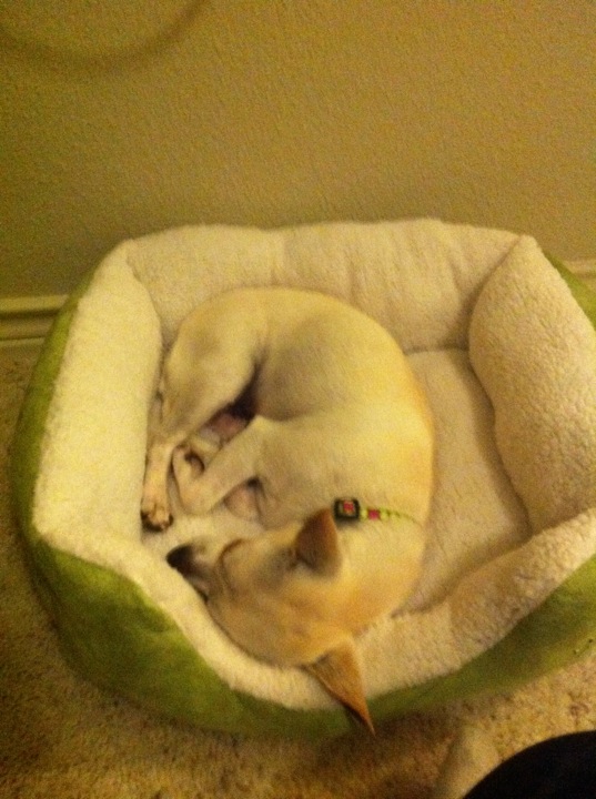 Once we got home, she immediately passed out in her dog bed. I knew right then and there that we would be happy to have each other every day from then on.