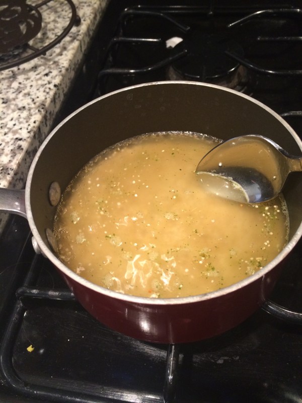 The first step was to boil water and add the vegetable bullion and quinoa.