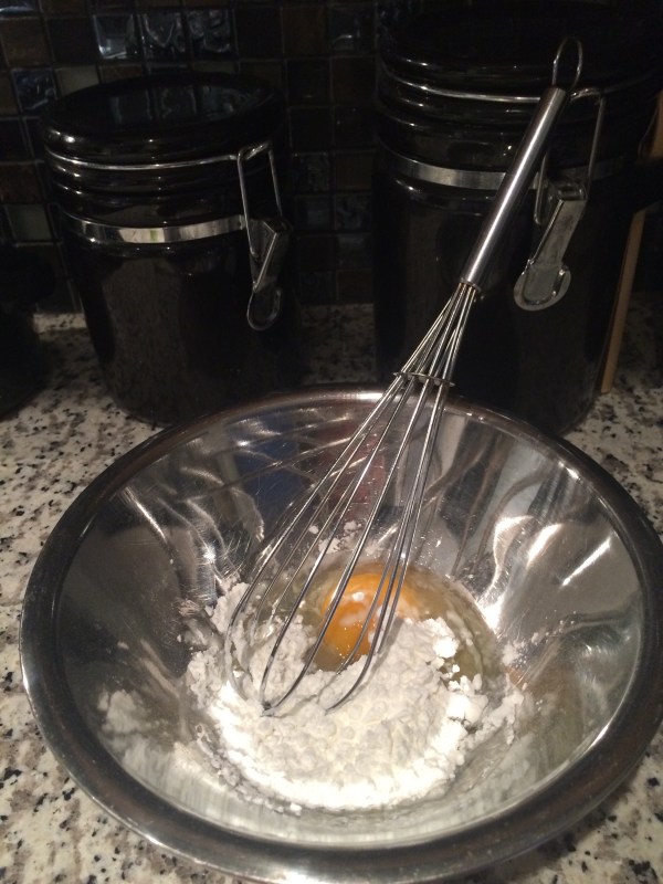 The next step was to whisk the egg and cornstarch together. Cornstarch is a tricky little substance.