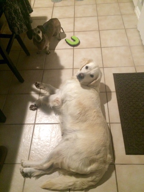 I can tell you that we will NOT be adding a third dog to the mix anytime soon. I did not have enough hands to pet everyone fairly at all times. During this time, we generally referred to our house as the zoo. When we all went down the stairs we referred to it as the Zoo Parade. When it rained and stormed, the place pretty much just became the circus. Even so, it was actually a ton of fun to see all their different personalities working together and bonding. And having three dogs after only having two for a short amount of time definitely has made our transition to just two much easier!