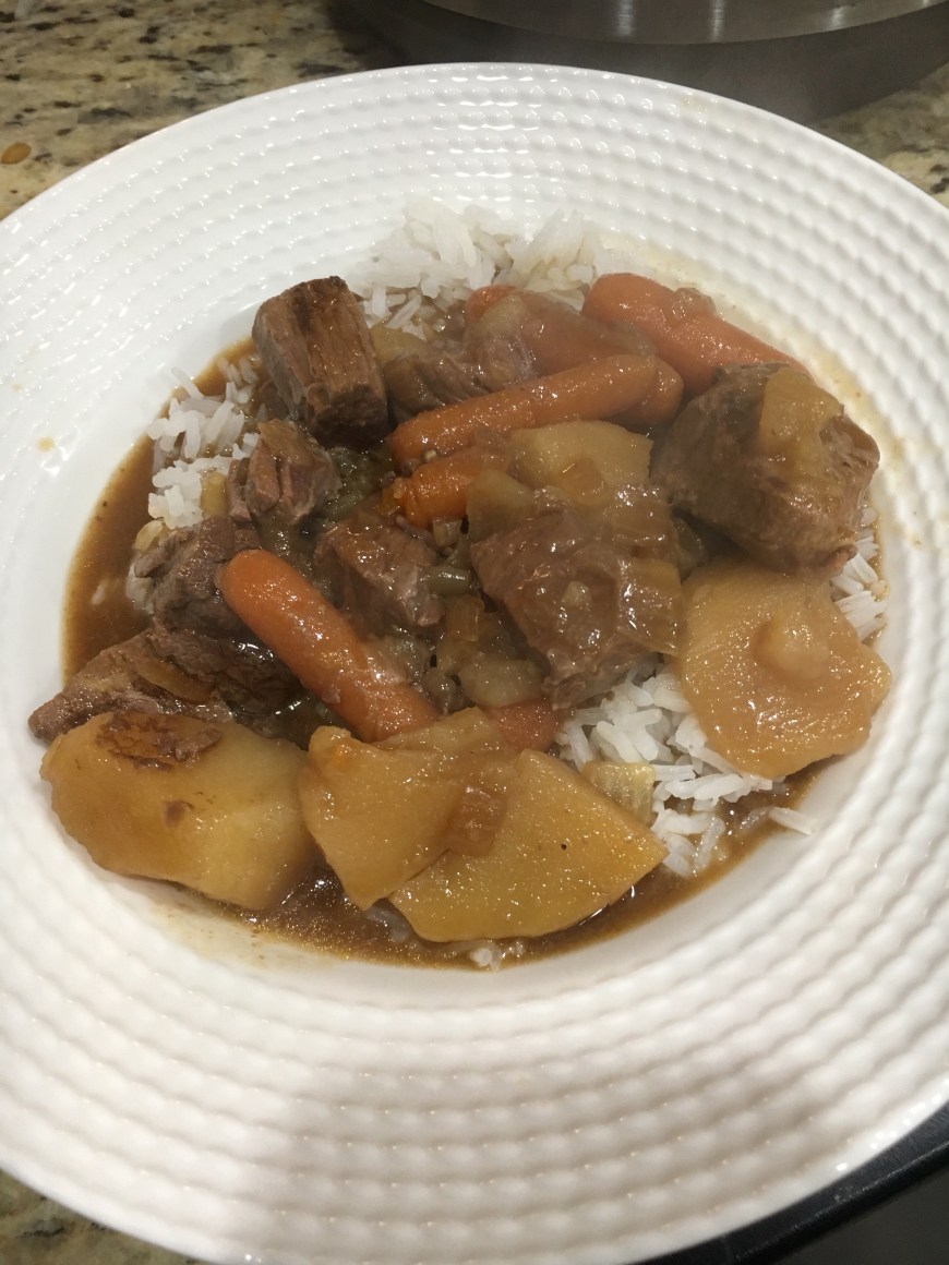 The meat was super tender and the carrots and potatoes tasted like they had been in the crock pot all day. I put it over some rice. Not that this is completely necessary, but who doesn’t love some extra carbs covered in gravy a cold night.